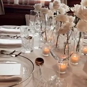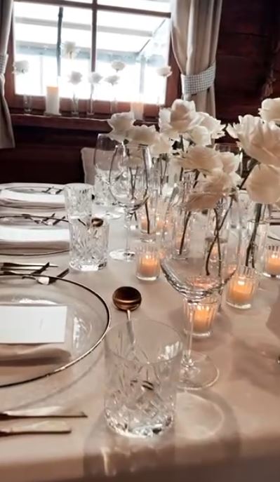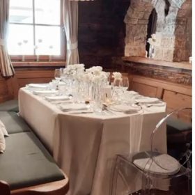 Der Veranstaltungsort, eine Alm in den Bergen, ist im alpenländischen Stil gebaut. Mit schönen alten Holzbalken, einer herrlichen Terrasse mit wunderbarem Ausblick in die Berge und dazu prasselndes Kaminfeuer. Eine Athmosphäre zum Wohlfühlen! Mit unserem Dekorationskonzept haben wir die Alm so verwandelt, wie es noch keiner vor uns gemacht hat: die elegante Tischdekoration mit Platztellern mit Goldrand, goldenem Besteck, eleganten Leinenservietten und den schönen Teelichtgläsern Kristall.