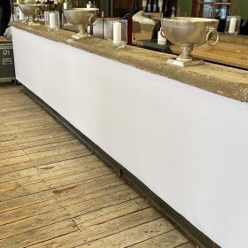 Die überdachte Terrasse erstrahlt in glamourösen Look. Unser Meisterstück ist die Bar im Außenbereich: zuvor mit Holz und Naurstein – nach unserem Cover haben wir sie mit cremefarbenen Leinenstoff zu ganz neuem Leben erweckt. Ein absoluter Vorher-Nacher-WOW-Effekt! Passen dazu sorgen die Champagnerkühler in silber für kühle, spritzige Getränke.