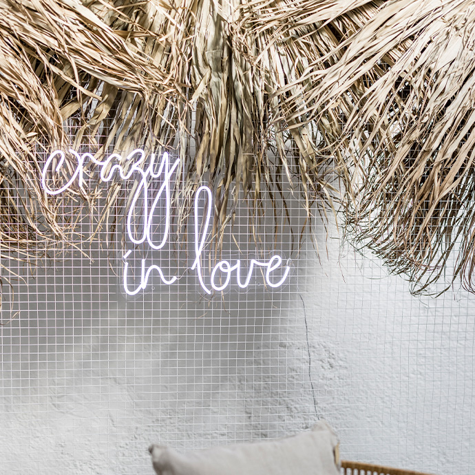 Ob als stylischer Backdrop bei der Freien Trauung oder als lässiges Deko-Highlight, unsere Neon Schriftzüge sind immer ein Hingucker. Für die Aufhängung wird eine extra starke Nylonschnur mitgeliefert, wodurch der Schriftzug schwebend wirkt. Der Neonschriftzug passt perfekt zu unseren Backdrops.