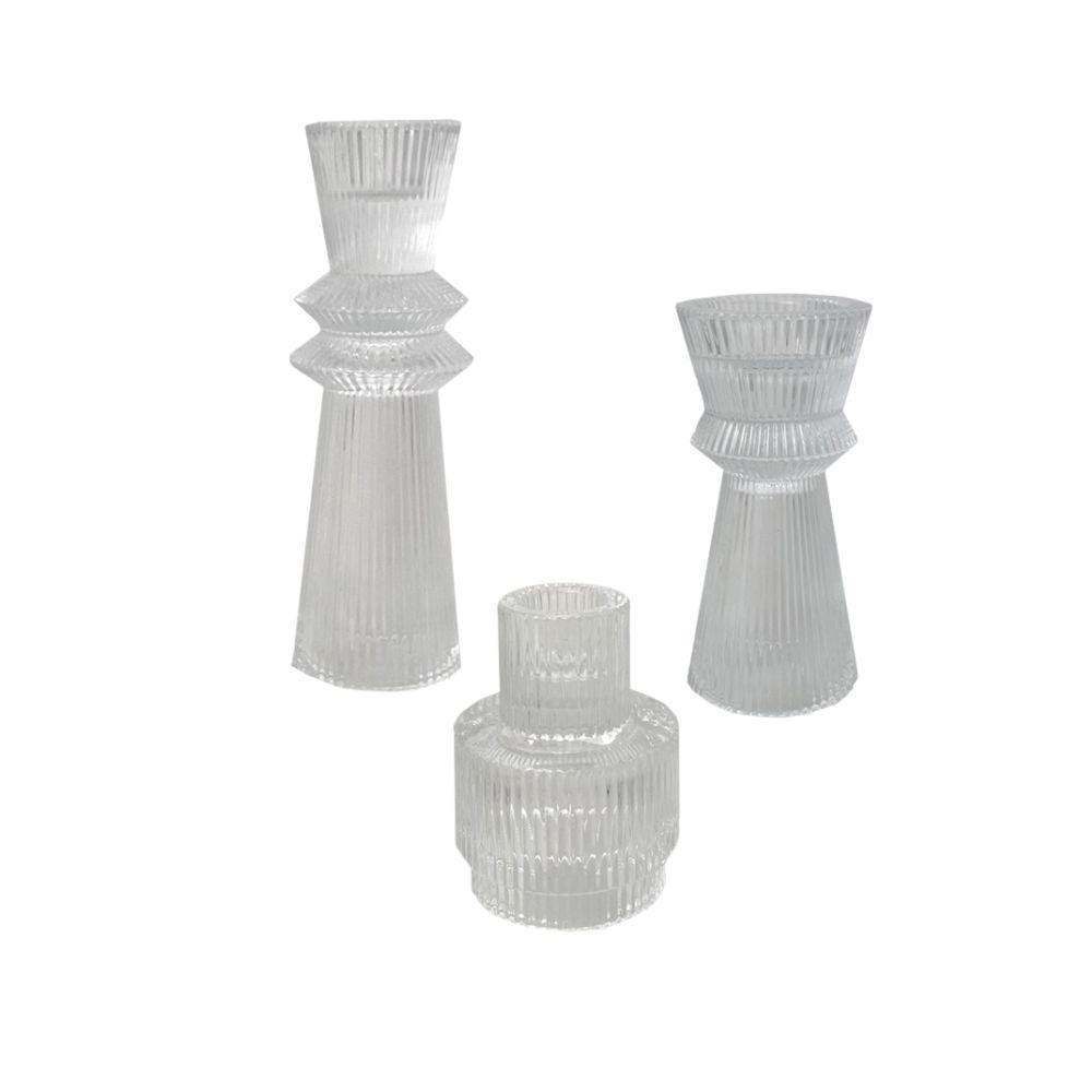 3x Kerzenhaltern mit unterschiedlichen Höhen und Formen