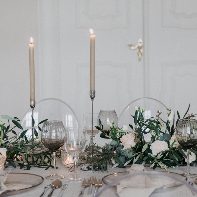 Die schlichte Eleganz und der elegante silberne Farbton geben der Dekoration das besondere Etwas.