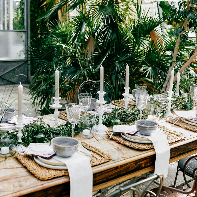 Das formschöne Kerzenhalter-Set macht immer eine gute Figur. Kombiniere es mit tollen Vasen aus unserem Sortiment und zaubere einen individuellen Deko-Look für eure Feier!