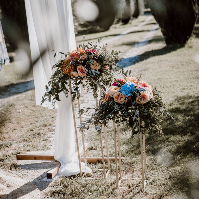Hinweiß: | Das Gestell hat keine Ablagefläche an der Oberseite. Die Gestecke müssen in Schalen daraufgestellt werden. |