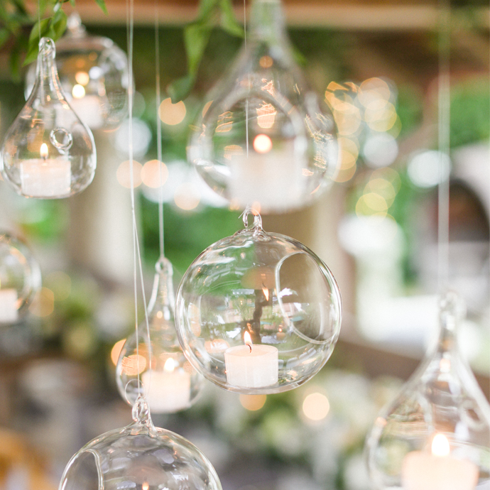 Die zauberhaften Hängekugeln eignen sich für Teelichter oder einzelne Blumen.