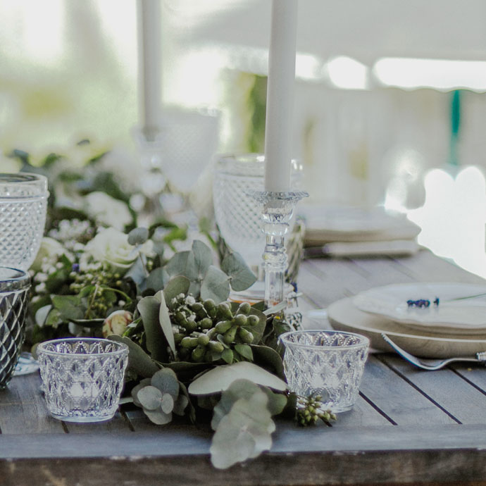 Das elegante Windlichter-Set macht immer eine gute Figur. Kombiniere es mit tollen Vasen aus unserem Sortiment und zaubere einen individuellen Deko-Look für eure Feier!