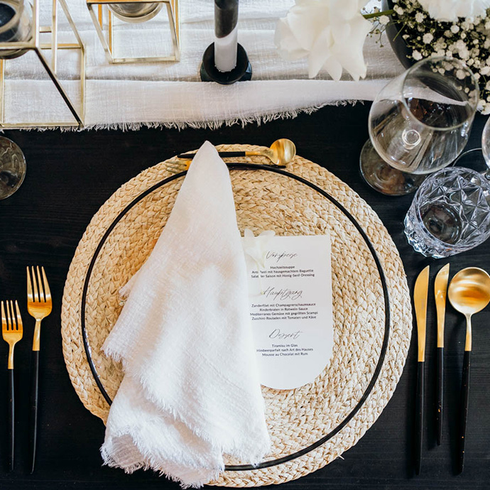 Hinweis: | Restliche abgebildete Dekoration ist im Mietpreis nicht enthalten. Kann aber auf Anfrage mit gemietet werden. Platzteller sind keine Speiseteller. Sonderreinigungen werden gesondert in Rechnung gestellt. |