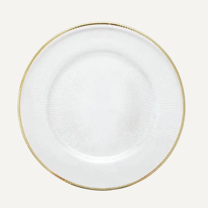 Die schönen Platzteller mit Stripesmuster schaffen den perfekten Rahmen, wenn ihr eure Tischdekoration modern, elegant und lässig halten möchtet. Die passenden Brotteller findest du ebenfalls im Verleihshop.