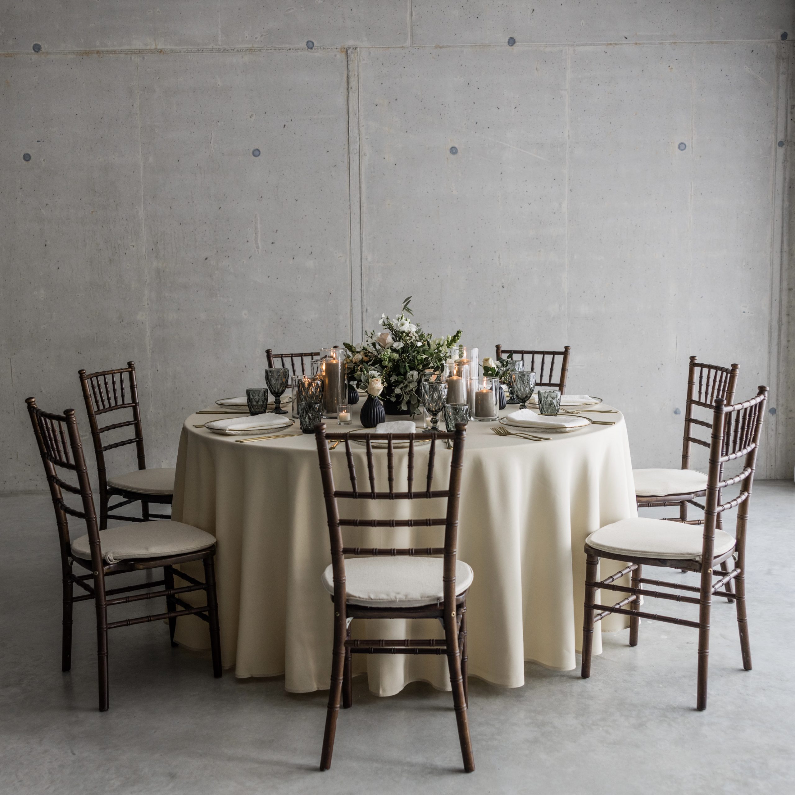 Diese Hochzeitsdekoration sticht durch ihre ruhigen Farben hervor. Diese finden sich in den Stumpenerzen wider, die in den Glaszylindern in unterschiedlichen Größen erstrahlen, sowie der Tischwäsche und Servietten. In Kombination mit den schwarzen Vasen, auch hier in verschiedenen Formen und Größen für euren Blumenschmuck, runden das Konzept ab. Wenn ihr auch euer Geschirr hervorheben möchtet, empfehlen wir euch die passende Tischwäsche, Servietten und Platzteller.