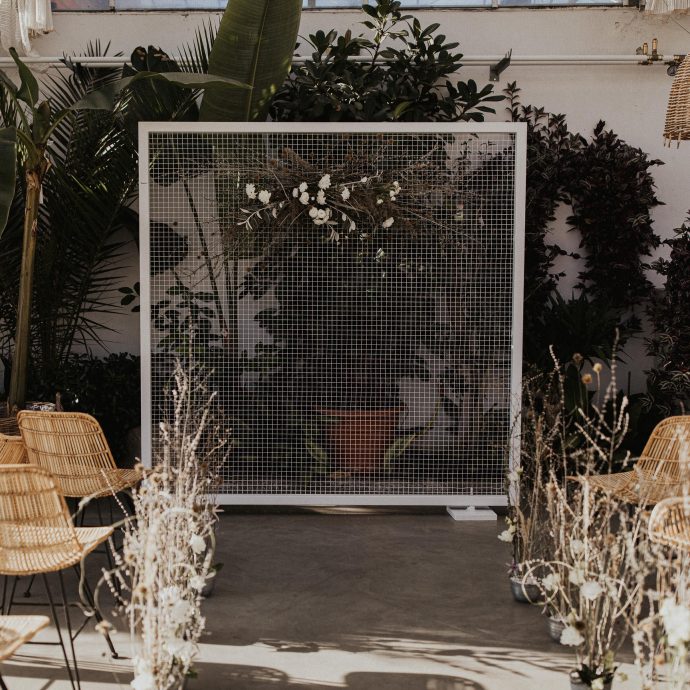 Dieser Wedding Backdrop mit WOW-Efffekt ist perfekt geeignet als Hintergrund bei einer freien Trauung, hinter der Bar oder als Deko-Highlight. Für den Transport können die Füße abgenommen werden. Das Gitter ist in einem Stück. Die restliche Dekoration ist im Lieferumfang nicht enthalten.
