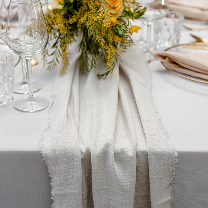 Tischläufer zaubern das gewisse Etwas auf den Dinner Tisch. Unsere Tischläufer aus leichtem Musselinstoff lockern die Dekoration auf. Durch die tolle Breite lassen sie sich wunderbar auf dem Tisch raffen. Die Tischläufer in unserem Sortiment passen perfekt zu unseren Servietten und sind extra auf unsere Tischlängen abgestimmt.