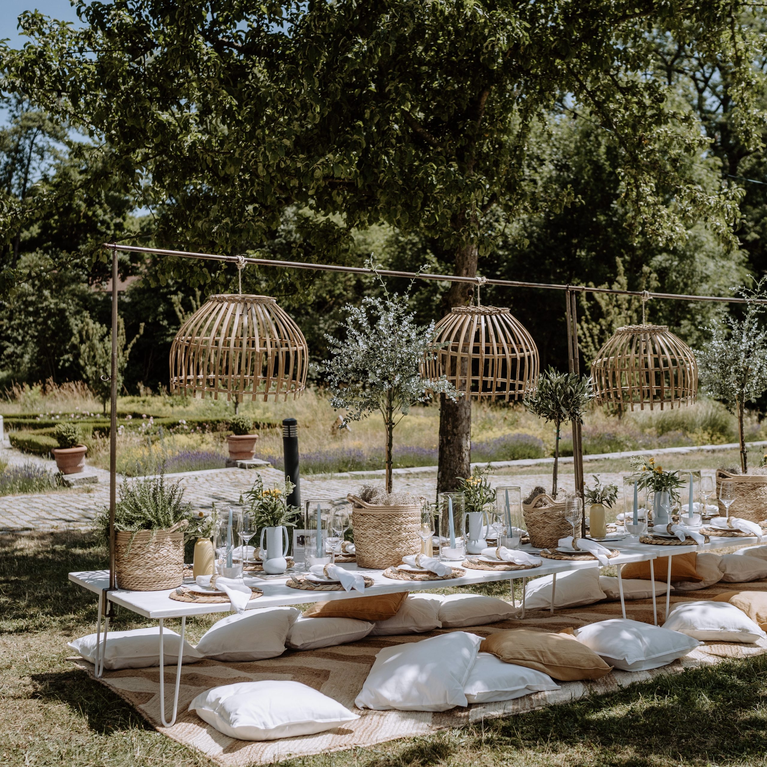 Die lässigen und schlichten Low Lounge Tische aus der Hampton Kollektion bieten Platz für 8 Personen und sehen in Verbindung mit unseren Teppichen und Poufs einfach zauberhaft aus. Mit ein paar kleinen Handgriffen ist der Tisch zusammengebaut. Das passende Werkzeug liefern wir mit.